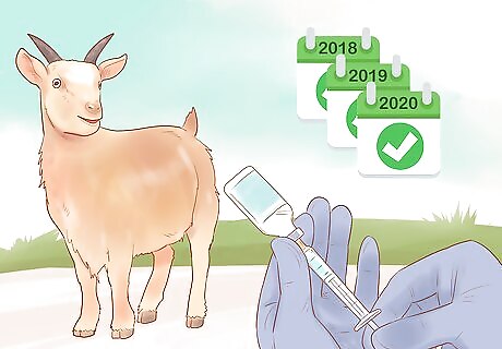 Give vaccinations yearly. Your goat will need to be vaccinated against enterotoxemia and tetanus, at the very least. You can usually buy these at local feed stores and give them yourself. You may also want to ask your vet about rabies shots. You may also want a clostridium CD vaccination.