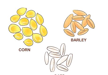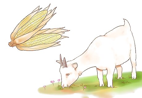 Supplement their diet with grains. In the winter, goats will need more feed. Also, young goats and goats that are providing a substantial amount of milk will need a supplemental diet of grains even in summer. Appropriate grains include corn, barley, and oats.