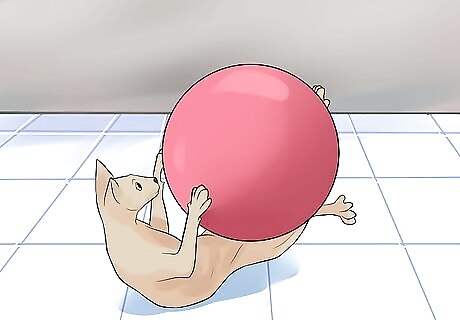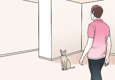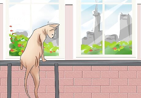 Provide places for the cat to climb. Sphynx cats have a lot of energy. They like to climb on furniture and doors, and even climb on people’s shoulders. They also are good at balancing and can be acrobatic tricks. Make your home a fun place for your Sphynx cat to explore by giving him plenty of places to climb. Consider attaching shelving to the wall in such a way that the cat has an aerial walkway around a room. Providing a high perch beside a door will give the Sphynx a great spot from which to watch people come and go, which could prevent your Sphynx trying to dash out the door each time.