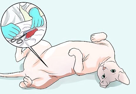 Desex your cat. Your Sphynx cat should be spayed or neutered. This generally takes place around five to six months old, before your female cat can start getting pregnant. While you are getting your cat fixed, you can also have an identichip fitted. ID chips are a permanent way of identifying your cat.