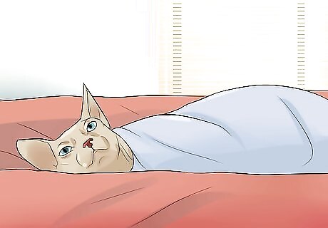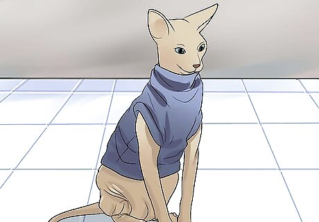 Keep your Sphynx cat warm. Because of the small amount of hair, the Sphynx cat needs to be kept warm. Usually, keeping the cat in your home at room temperature is enough. Sphynx cats also often lie in sunlight shining through windows or sit near objects that give off heat. Your Sphynx may want to cuddle with you often to be near your body heat. He may also want to sleep beneath your comforter at night. Provide access to blankets that your cat can lay on or under. During the winter you may need to place your Sphynx cat in sweaters.