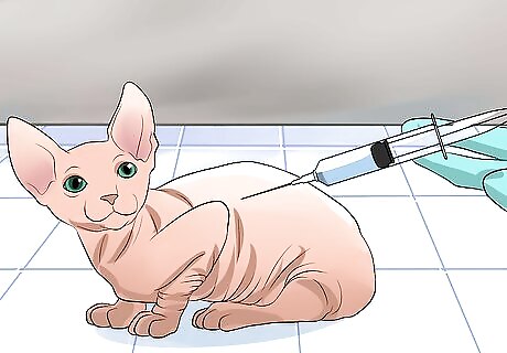 Vaccinate your cat. You should vaccinate your Sphynx cat against common infectious diseases, such as cat flu, feline infectious enteritis, feline leukemia, and rabies. The initial kitten vaccinations require two doses to be effective, given from nine weeks of age and given three to four weeks apart. If in doubt about when to vaccinate, phone your local veterinary clinic to be advised of the protocol that they recommend and work to. Get your cat booster injections once a year.