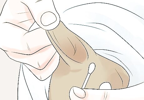 Wash your cat’s ears. Because of the large size of the Sphynx’s ears, they need to be cleaned regularly. Gently clean the ears with cleaning solution on a cotton ball or cotton swab once a week. If you neglect your Sphynx’s ears, he can get a build up of ear wax, oil, and dirt.
