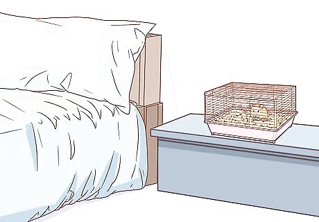 Locate the hamster's cage in a quiet place. Your hamster needs quiet to avoid stressing it with loud, sudden sounds. Keep the cage is out of the full sun, and do not keep hamster cages in a room where food is prepared.