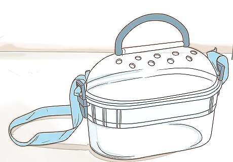 Buy a carry case. Most pet stores offer cardboard boxes, but hamsters can chew right through them. Buy a carry-case made for Syrians. Cheap ones with lids that come right off and are easy to escape from are no good; you'll need to purchase a proper carry case from a pet shop. They will be a much more expensive option, but also the better option, as this can be re-used whenever you need and are escape-proof. Do not bring your new hamster home in its cage. It is also useful to have a reliable carry case at home, for those times when you need to transport the hamster safely to the vet.