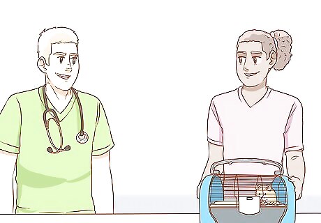 Visit the vet when needed. Rush your hamster to the veterinarian clinic if the fur under its tail is always wet, if it shows signs of a cold, if it has lumps or bumps on its body, or it has gone off its food, water and playing times completely. In addition, you should take your hamster to the vet if it has watery eyes, has runny droppings (diarrhea), its teeth have broken, or if its claws need clipping. Vets have got special clippers for hamster claws and know exactly how to do it. It is safer and better to leave this to the experts rather than trying it by yourself at home. Hamsters can't run on their wheels very well if they have long claws, since that hurts for them!