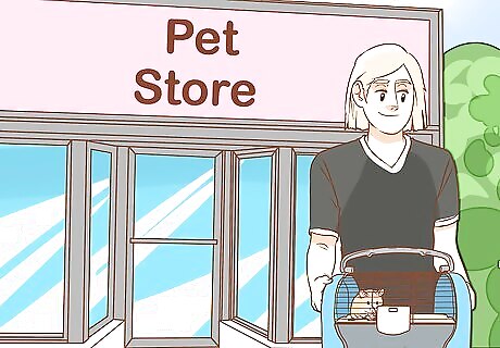 Buy a cage. A good cage for a Syrian hamster is a cage larger than 600 square inches, although 450 square inches of floor space is the minimum. This might seem like a lot, but imagine living in tiny room your whole life. Never give your Syrian a cage any smaller than that because they will be severely cramped. Most pet store cages are too small; instead try a 40 gallon (151.4 L) long tank, a bin cage, or a DIY cage. Remember, a cage that is too small will lead your hamster to extreme boredom and severe stress. It doesn't matter if you see a cute cage at a pet store and think it must be okay because they're selling it there. The only exception to small cages is if you buy three or four and connect them together with tubes. Most cages at pet stores are too pricey anyways. It's best to avoid "starter cages" or "beginner cages"; these are much too small. Instead, purchase a cage suitable for the hamster's entire lifespan at the start, as this will save you money and bring much stress-relief in the future. The 450 square inches of floor space does not include levels. Solely the ground floor must be 450 sq in. Levels do not count. Try to buy a cage bigger than this though, as hamsters need as much space as you can give them. No cage is ever too big.