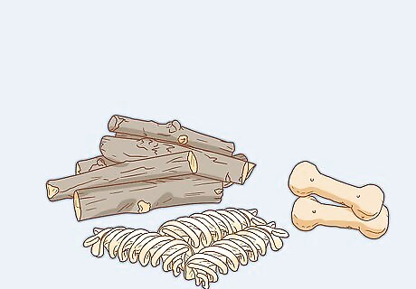 Provide chews to help file down the hamster's teeth. This prevents your hamster from having to chew on its cage bars and potentially damaging his or her teeth, and it prevents the teeth from becoming overgrown. To reduce the risk of teeth overgrowing, give your hamster dog biscuits, dry whole wheat macaroni, or wood from orchard trees, such as apple, pear, plum or cherry. Provide mineral/salt blocks.