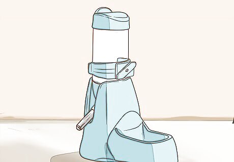 Provide the hamster with clean, fresh drinking water. Make this available at all times. A sipper bottle is ideal since this doesn't get contaminated with bedding or food in the same way a bowl does. Make sure to check the water level every day, so that your hamster never gets dehydrated. Wash the inside with a bottle brush. It may look clean, but the inside of the bottle will become coated with harmful bacteria. Use a hamster approved water bottle. Filtered water is best, but tap is fine - as long as you dechlorinate the water, either by using dechlorination liquid/tablets or by leaving the water out in the open over night.