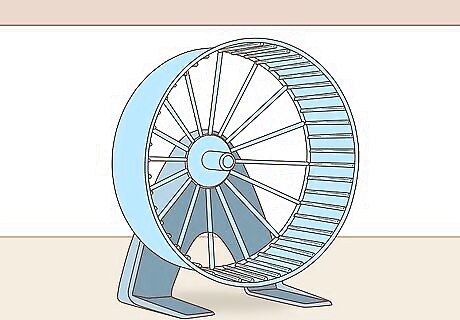 Buy wheels and accessories. Wheels and accessories, like Hideaway Huts, made for Dwarf hamsters and mice are far too small for Syrian hamsters! Allow the hamster to have plenty of room to move around in, and make sure you have an 11-12 inch wheel; Wodent Wheels are best. When buying a wheel, visualise an adult sized Syrian hamster inside. Your pet needs to be able to run on the wheel with its back straight. A Syrian hamster's wheel needs to be 10–12 inches (25.4–30.5 cm) in diameter. If the wheel is too small, the central spoke will cause the hamster to flex in the wrong direction (its back makes a "U"). If in doubt, buy the largest wheel that will fit in the cage, such as a rat-wheel. Also, make sure that your wheel isn't made of wire or mesh material, because this can cause bumblefoot.