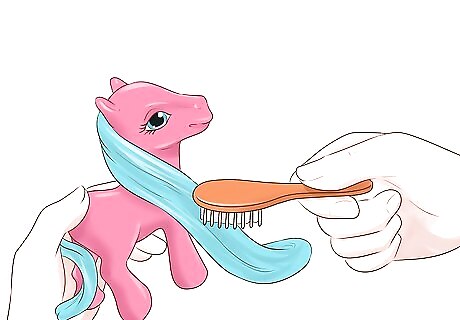 Wash the pony. Brush your pony's hair while it's still a little damp.
