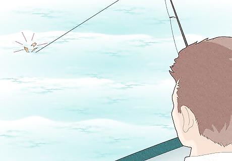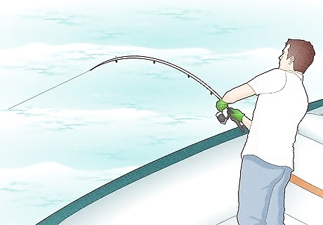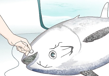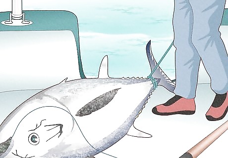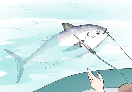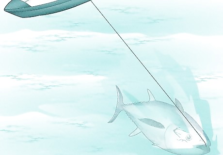 Watch for the death circle. After a few runs, the tuna will start to circle under your boat. Apply constant pressure to wear down your fish by inching the drag up and switching to a lower gear on your reel to bring the fish up toward the boat. Make sure that you pull the fish away from your engine so that your line doesn't get caught in the props.