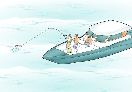Take a few chartered fishing trips to catch bluefin before you strike out on your own. You'll learn about the procedure and about the equipment that you'll need, and you'll learn whether or not the sport is for you. Look online to find charter cruises in your area, particularly around Cape Cod and Cape Hatteras. Ask the captain whether you get to keep your catch (or if there is a weight limit) or if the fishing is catch and release. Your catch, if you get to keep it, may not be something you can legally sell. Have a plan for what you're going to do with all of this fish--sushi, anyone?