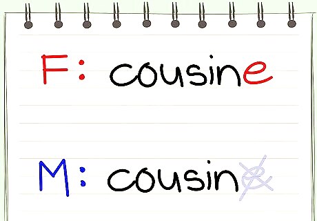 Look at the word. See if it currently ends in an "e" (such as amie, employée, or cousine) or ends in another letter (such as ami, employé, or cousin). If it ends in an "e" it is most likely feminine.