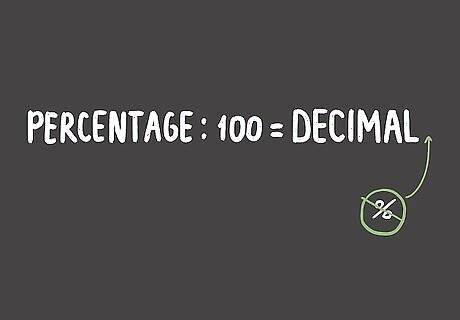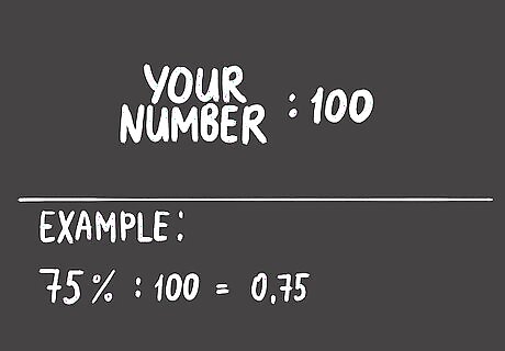 Divide by 100 using a digital calculator. Don't worry about the percentage sign. Simply take your number and divide it by 100. Use a simple handheld calculator, an online calculator, or a calculator app on a smartphone, tablet or computer.