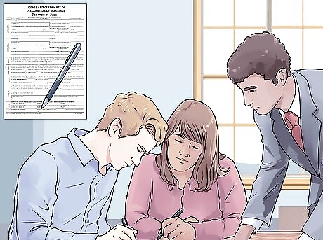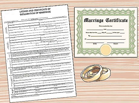 Fill out the marriage license. Once you've gotten your marriage license and are married, make sure the license is signed by your officiant. Your officiant can be a justice, judge, lawyer, notary public, ordained minister, cleric, or licensed preacher. This is the first legal document you'll need to get in order to change your name, don't lose any copies you pay for after filing the license. In most counties, your officiant will need to officially file the license with the county. At this point, you'll need to pay for $7 for each certified copy of your marriage license at the municipal level (and $3 for extra copies.)