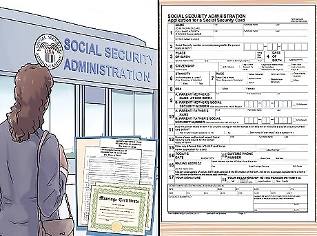 Go to the Social Security Office. From there you can pick up and fill out the Official Form SS-5. You'll need to show the certified copy of your marriage license, which includes your old and new names. If it's been more than 2 years since your marriage, you may need to give other documents proving your old name. Once you've shown documentation of your new legal name, fill out an application for a new Social Security card. There's no fee to apply and you should get it in the mail within 2 to 4 weeks.