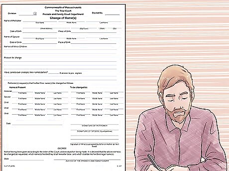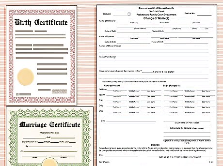 Gather the necessary documents. You will need certain documents ready if you want to change your name in Massachusetts. Make sure you know what you need and where to get it. You will need a petition for name change, known legally as Form CJ-P27. The PDF of this form can be downloaded at the Massachusetts Court System's web page. You will need a certified copy of your birth certificate. This is available at the Registry of Vital Records or from the city or town where you were born. Non-english birth certificates must include a translated copy signed by a professional interpreter. If your name has been previously changed by a court decree or marriage, either a copy of your amended birth certificate, your marriage license, or a copy of the court decree must be presented with the petition. If you're changing your name due to divorce, you need to file a certified copy of the divorce judgment.