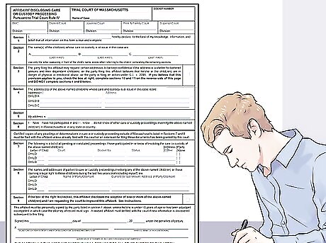Fill out the Affidavit Disclosing Care and Custody Proceedings. This is a form that lets the court know if any other court is making decisions in regards to your child, and is required when filing a name change petition. It will ask for the following information: Your name and address Your child's name and address Whether you know of any other care or custody proceeds regarding your child The status of any pending or concluding custody proceedings Your signature