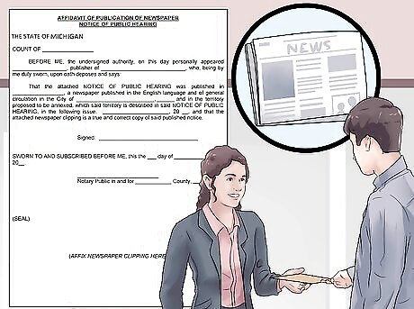Notify the public. The court may want you to notify the public that your petition has been filed. This is to make sure there is no confusion during the transitional phase. The citation for publication will be sent to you by the court, and you must arrange to have the citation published in a local newspaper. There will be an additional $15 fee for this. If you have good cause, such as personal safety concerns, you can file a motion to waive the publication and an affidavit (a sworn statement) stating why you do not wish to have this information published. You may have to go before the judge personally to explain your reasoning.