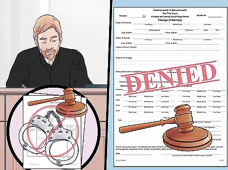 Understand the reasons a petition may be denied. There are a variety of reasons a judge may deny your petition. Be aware of these reasons before beginning the process of changing your name so you don't inadvertently cause your petition to be denied. A name change petition would be denied if you were changing your name to avoid judgments, legal actions, debts, or obligations. A person cannot change their name to defraud another person. A criminal record can affect your chances of legally changing your name. While some courts will still grant a petition if you have a lengthy legal record, but if the crime took place in recent history or if you are currently incarcerated the petition will likely be denied. Most states prohibit a name change that uses vulgarity, racial slurs, or anything designed to incite violence. Name changes are frequently denied if they cause undue confusion, such as using symbols or numbers.