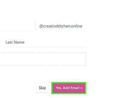 Select an option on the "Add Professional email" window. If you'd like to pay a monthly rate to send and receive email from your domain name using Gmail, fill out the form and click Yes, Add Email. If not, click Skip.