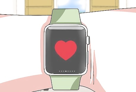 Wait for your Apple Watch to read your pulse. You won't be able to see it well, but on the Apple Watch version 3.0 (or later), when the Watch is reading your pulse, it'll send a green beam of light from the pulse sensor into your skin, which will radiate back your heart rate information.