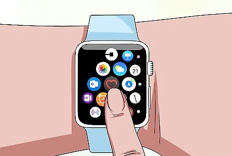 Unlock your Apple Watch. If your Apple Watch is locked, raise your wrist to wake up the screen, then tap TAP TO OPEN and enter your passcode. If your Apple Watch's display has notifications on it when you wake it up, first press the Digital Crown (the dial on the right side of the Watch's housing) to dismiss the notifications.