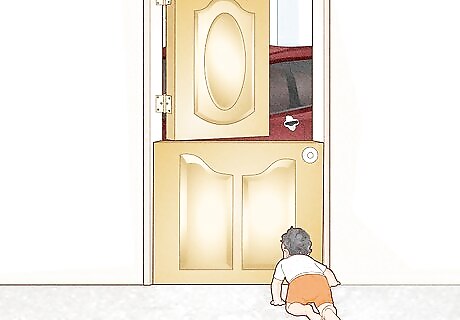 Install a Dutch door in the passageway between your garage and your house. A Dutch door has two independent sections, so you can open the top part while keeping the bottom closed. You can open the top part to pass groceries from the garage to the house, while keeping the bottom locked so that your child doesn't sneak out during this activity. If you are working in your garage and want to leave the door open to allow for some fresh air in the house, you can open the top part of the Dutch door and still keep toddlers and pets safely in the house. You might also consider installing a Dutch door at the front of your house. This will allow you to let in some sun and air while keeping your toddler off the street and out of the driveway and garage area. If you have a Dutch door, you don't need a childproofing gate at this door.