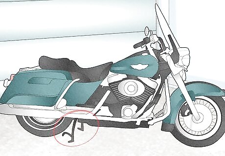Keep your motorcycle in a safe position. You should make sure your motorcycle would not fall on a small child. Your bike should be in gear and the parking break should be turned on. Put the side stand or center stand on. You can try rocking your bike back and forth a bit to make sure it is secure and the stand is working properly.