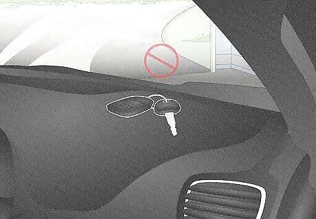 Make sure your vehicle is inaccessible to your children. You should never leave your keys inside your car. If your keys are accessible, your child may start the vehicle and get hurt from the exhaust fumes or in an accident with another object or vehicle. Lock both the doors and the trunk of your car so that small children cannot climb into them. Your child may accidentally get trapped in the car if you leave your car doors or trunk unlocked. Before walking away from the car, always check that you have not left a child in it. Then make sure that the car is locked.