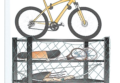 Safely store sports equipment in the garage. You should store sports equipment away from the reach of your child. You should also make sure it is stored securely, since you do not want it falling on your child.