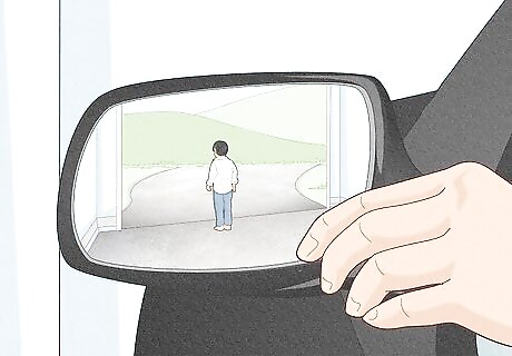 Look to make sure your child is not standing behind the car. If you are backing out of the garage, always to check to see if there is a child behind your car. Look in the rearview mirror or use the rearview video camera to make sure there is nothing behind your vehicle when you are backing out. Your children should be in the car, in the house or otherwise safely out of the way when you are backing out of the garage. If your children are playing in the driveway, ask them to move inside or to the backyard. If you are driving a motorcycle or other vehicle, you should look behind you to make sure your children are not standing in the way.