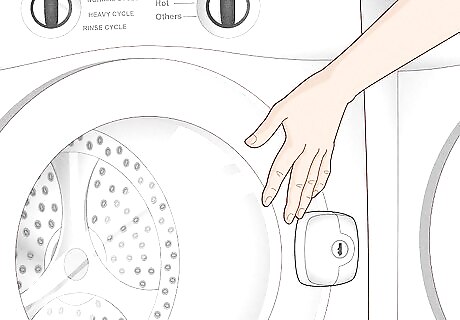 Lock the doors to your washer and dryer. If your washer and dryer come equipped with a locking mechanism, you should use it. Close the door of the washer or dryer and then turn the machine off to engage the locking mechanism. If your washer or dryer has a child lock, turn it on. A child lock will prevent your small children from turning the machine on and climbing inside. If your washer and dryer do not have locks, you could purchase a washer and dryer locking strap. Although not as secure as a lock, a strap to keep the door from swinging open easily should keep children safer. You should also keep any laundry chemicals out of reach of children.
