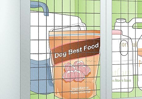 Safely store pet food, containers, and equipment. If you have pet food, cat litter, storage containers or other pet items in the garage, make sure these items are safely stored out of the reach of your children.