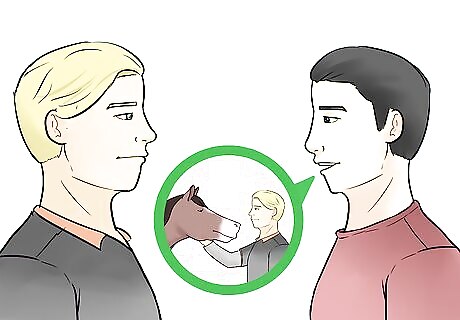 Introduce potential trainers to your horse. It's important to see how your horse responds to various trainers. Sometimes, there might be a compatibility issue with the trainer and the horse's personality. Give them a little time to engage with one another and observe the results. You know your horse's personality, so you will be able to tell whether the horse likes the trainer or not. Watch how the trainer treats your horse and whether your horse seems responsive to the trainer.