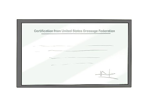 Inquire about education and certification. Unfortunately, the United States does not require any kind of specific training or certification for a person to advertise themselves as a horse trainer. You should ask prospective trainers how they started in the field, whether or not they had an apprenticeship, and who taught them their trade. In the U.S., there are a few associations that have strict ordinances regarding certification for horse trainer status, namely the United States Dressage Federation and the United States Eventing Association. There are some universities that offer degrees in equine training and management. In other parts of the world, including Europe and Australia, horse trainers must go through rigorous training and certification in order to call themselves horse trainers and earn money under that title.