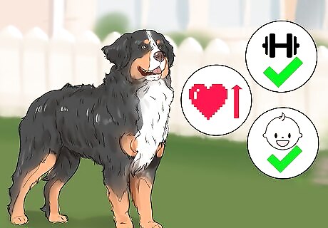 Think about temperament. Before choosing an active dog, research the personalities and temperaments of specific breeds. For example, if you have children you will want to choose a breed that is calm, friendly, and good with kids. If you live in a crowded apartment building, don't choose a breed that barks frequently.