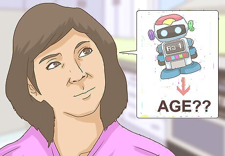 Consider the child's age. Not all educational tech toys are appropriate for all ages. This means you should think about the child's age as you choose one. Most toys have suggested ages on the package, which can help you choose the right product for the right age. Though the child may be able to use a toy designed for an older kid, think about the toy parts. Many toys aimed at older ages come with small parts that pose a choking risk for younger children. For example, some electronic devices have pointers attached to them to use on the screen. These may not be appropriate for smaller children since they may cause injury.