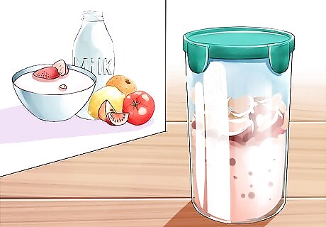 Stock up on protein-rich dairy foods. One of the best food groups for a no-cook and nutritious breakfast is the dairy group. High in protein and calcium, many of these foods work perfectly for rushed mornings. Dairy products are great for breakfast because of their protein content. A high-protein breakfast will give you the energy you need to fuel your day, but also helps keep your appetite in check throughout the day. Dairy foods are also great for breakfast, because most of them do not require any preparation or cooking to eat. The best items are yogurts, cottage cheese, regular cheese, kefir and milk. To make breakfast even quicker, purchase individual servings of these items (for example an individual yogurt). To make sure you stick to the right calories and serving size, measure your portions. For dairy, measure out 8 oz or about 1 cup per serving.