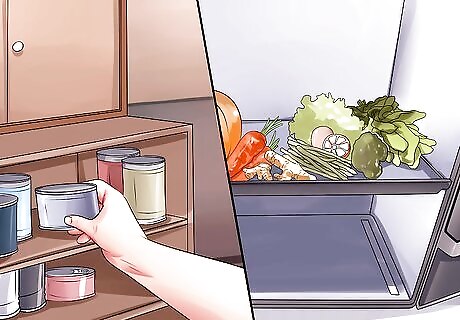 Keep your kitchen stocked with easy to prepare foods. Whenever your goal is to make quick meals or do little to no cooking, you need to make sure your kitchen is stocked with the right type of foods. Keeping your refrigerator, pantry and freezer stocked makes meal prepping and mealtime a lot easier. Every week, set aside some time to evaluate your stock. Take a look through your refrigerator, pantry and freezer to see what you need. Then write up a corresponding grocery list to help you at the supermarket.