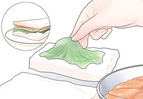Make an open-faced smoked salmon sandwich. If you want to get some healthy fats and omega-3 fatty acids into your morning meal, trying putting together this open-faced smoked salmon sandwich. To start, toast one piece of whole grain, dark rye bread. You can serve this on non-toasted bread, but a little crunch as the base is tasty. Spread on 1 – 2 tablespoons of light whipped cream cheese. Press 1 teaspoon of capers into the cream cheese so they don't roll off your sandwich. If you like, you can top the cream cheese layer with a few thin slices of tomato and red onion. Lastly, layer on 3 oz of thinly sliced smoked salmon or lox. Grind a little fresh black pepper on top and serve.