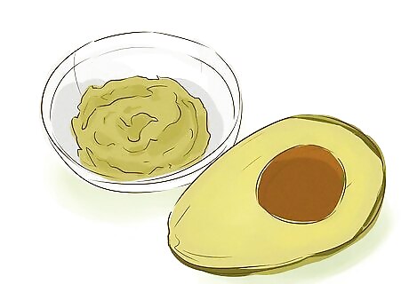 Munch on guacamole and whole grain corn chips. Get a little healthy fat into your afternoon snack by having some homemade guacamole. It's a tasty snack that's healthy for you and your cholesterol levels. Mash up an avocado in a large bowl. Use the back of a fork, spoon or potato masher. You want to get it to a fairly smooth consistency, however a few lumps is OK. Add in about 1/4 cup of diced tomatoes, 1/4 cup of diced onions, 1 clove of garlic minced and 1 tablespoon of chopped cilantro. Drizzle in 2 tablespoons of fresh lime juice and season with salt and pepper. Bring half of your guacamole mixture as your afternoon snack. Keep it sealed in an airtight container. Serve with whole grain tortilla chips for an extra hit of fiber.