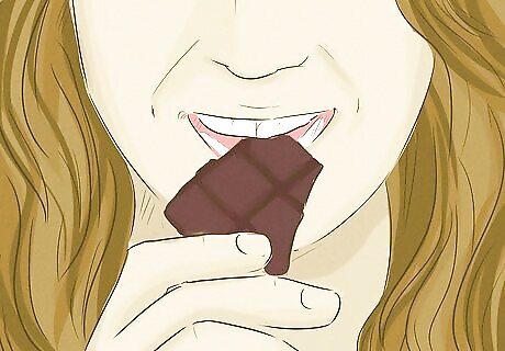 Indulge in a piece of dark chocolate. Need a good reason to grab that piece of dark chocolate? Studies have shown that small quantities of dark chocolate can help lower cholesterol levels and even prevent it from sticking to the insides of your artery walls. Dark chocolate contains a few compounds that can help you manage your cholesterol levels. This sweet treat contains antioxidants known as procyanidins and epicatechins and oleic acid (a type of fat) that have shown to have positive effects on cholesterol levels. The antioxidants have been shown to help prevent the oxidation of LDL (the "bad" cholesterol) from sticking to the inside of your artery walls. The oleic acid, even though its a type of fat, has been shown to reduce total cholesterol levels. Choose a type of dark chocolate that is comprised of at least 70% cocoa solids. This is where all those beneficial nutrients are. A small 1-2 oz serving of dark chocolate makes the perfect snack. However, be careful not to down the entire bar or several pieces.