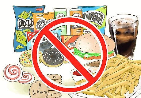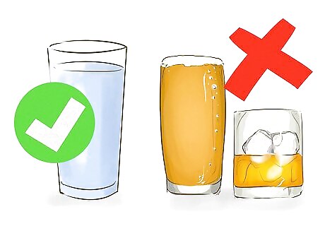Skip sweetened beverages. In addition to foods that can cause high cholesterol, there are beverages that are equally as unhealthy. Just like foods, sweetened beverages have been linked to higher cholesterol. Skip sugary, sweetened beverages like: smoothies, sodas, fruit juices, fruit drinks, sports drinks, energy drinks, sweet teas, lemonade and sweetened coffee drinks. Instead, stick to unsweetened, beverages like: water, sparkling water, flavored water, unsweetened decaf coffee and tea. Health professionals recommend consuming at least 64 oz or about 8 glasses of clear fluids each day. However, you may need even up to 13 glasses daily. Keep in mind, though, that these recommendations do not take into account chronic health conditions that might be exacerbated by excess fluid intake.