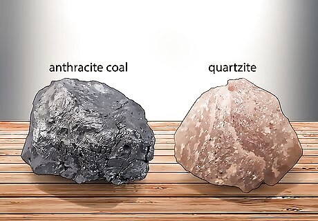 Examine the texture of the rock if it doesn’t have layers. If the rock doesn’t have layers and is black, then it is most likely anthracite coal. Rocks that have ingrained quartz are quartzite. If you can see large grains of recrystallized limestone, this means that the rock is marble.