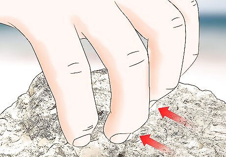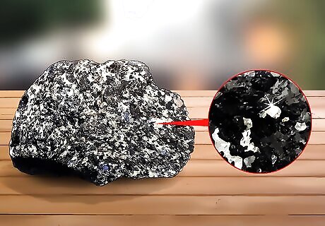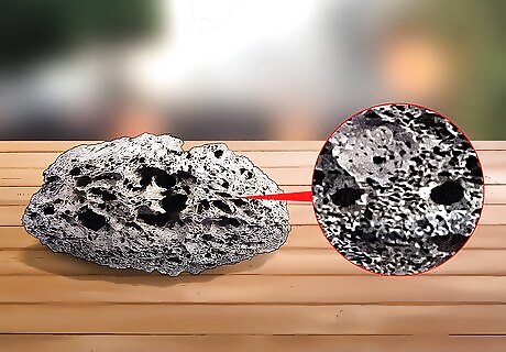 Check the rock for gas bubbles or holes. Look at the surface of the rock to see if you can spot tiny, scattered holes. This is because gas sometimes gets trapped in igneous rocks as they form. In some igneous rocks, the holes caused by the bubbles will reach all the way through to the other side.