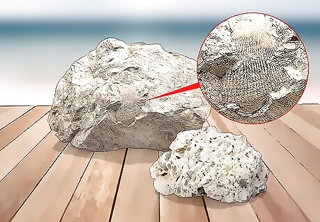 Check the rock for fossils. Fossils are imprints that formed in the rock while it was being made. These imprints are usually of plants, shells, or insects. Generally, only sedimentary rocks have fossils.