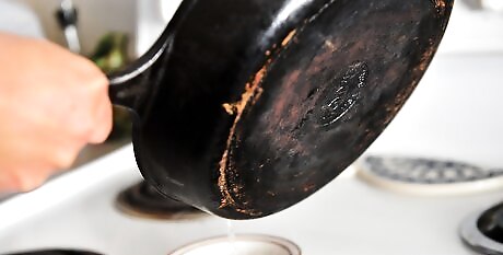 Put the skillet back on the heat and pour off all excess fat with the exception of about 2 tablespoons (30 ml). If no fat is left, add 2 tablespoons (30 ml) of oil. You need some fat/oil to help clean one way or another.