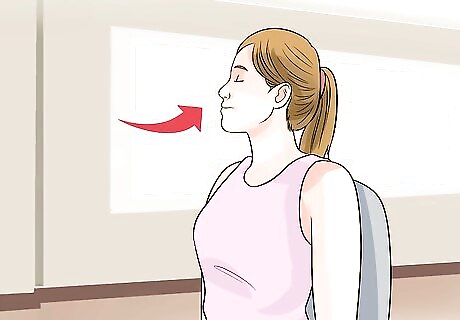 Breathe deeply from your stomach while draining your lungs. While reclining in each position for postural drainage, breathe by expanding your stomach. Rather than focusing on breathing high in your chest (which may cause a coughing fit), focus on breathing low in your stomach. This will help the phlegm drain from your lungs. Press out your stomach as far as it will go, and then imagine that you’re trying to fill that entire space with air when you inhale. The medical term for this type of breathing is “belly breathing” or “diaphragmatic breathing.”